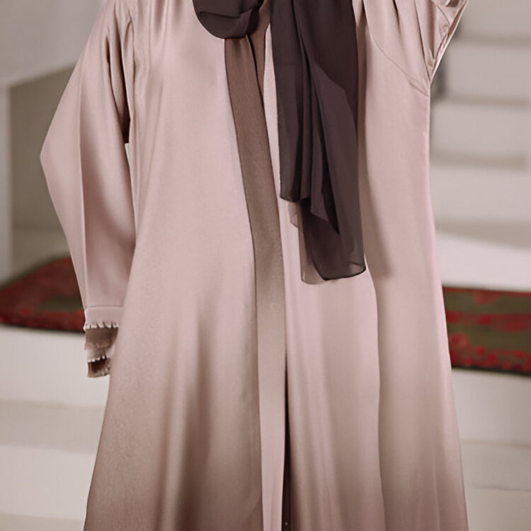 Radiate soft elegance with this two-tone abaya in beautiful shades of Brown and foun, crafted from premium flowy fabric that feels smooth and comfortable against the skin. . Its graceful color blend and elegant silhouette make it perfect for gatherings, casual outings, or special occasions. Designed to drape beautifully, this piece combines comfort, femininity, and timeless sophistication.