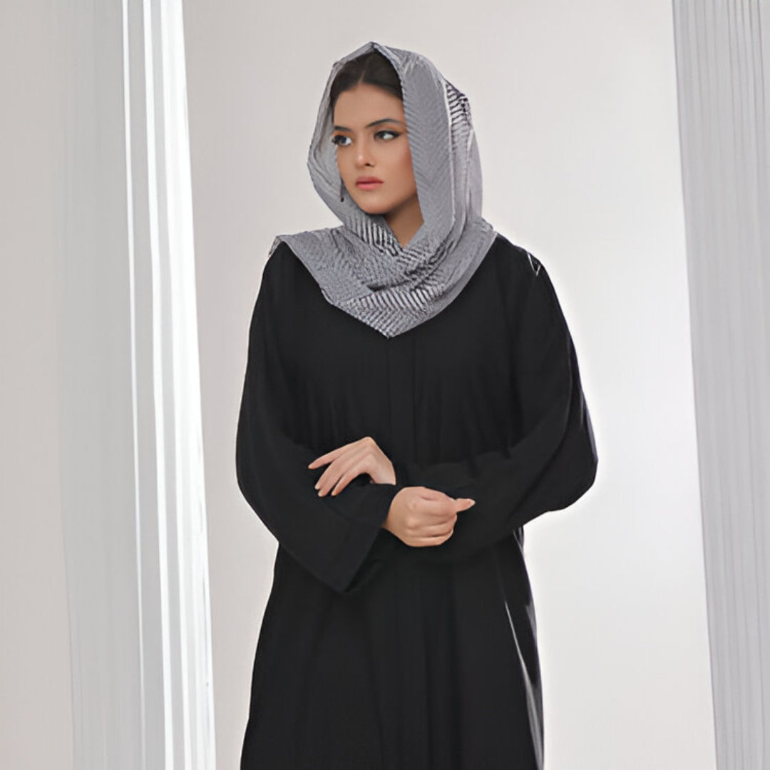 Elegant Front Open Design & available in Multiple Lengths & Sizes & Timeless Black Color , Includes a Digital Printed Korean Chiffon Sheila